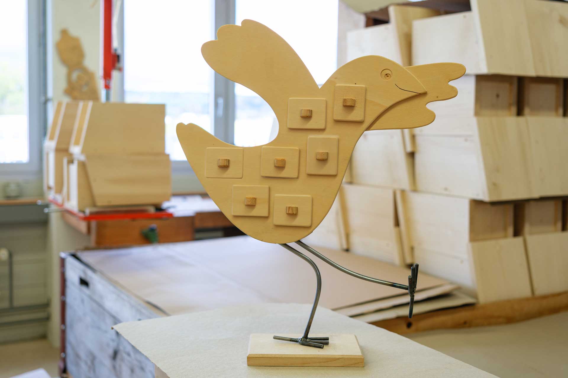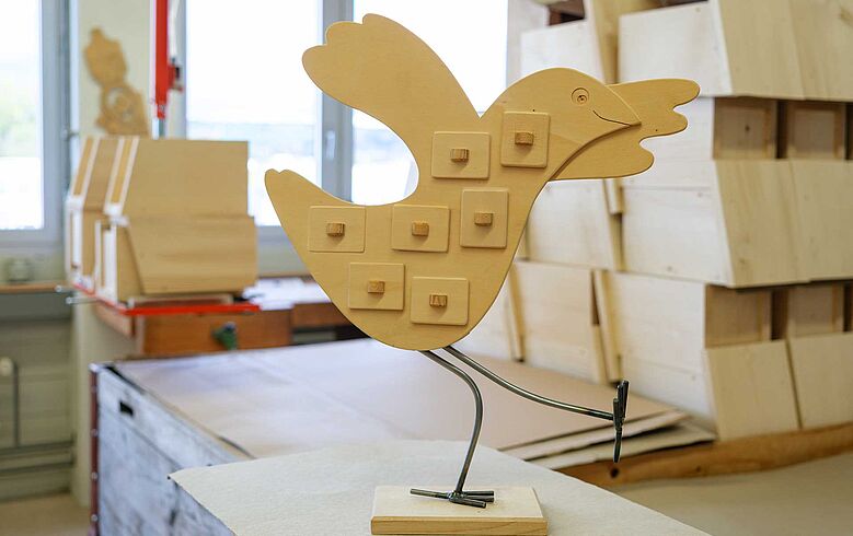 Ein hölzerner Seelenvogel mit sieben solcher frei befüllbarer Schubladen kann jetzt für Unterricht und Katechese erworben werden. Ein Brändi-Betrieb in Sursee hat die Figuren nach den Skizzen von Beatrix Späni-Holenweger, der früheren Verantwortlichen für Religionsunterricht bei der Landeskirche, erneut hergestellt. Der Seelenvogel kann in allen Altersgruppen eingesetzt werden.